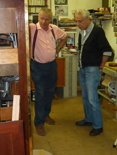 Elbert Pluer en oudgediende Jan Mink, die vele jaren met het orgel gelopen heeft, luisteren naar het resultaat.