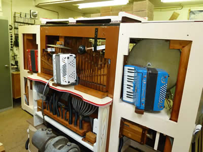 De restauratie van het welbekende Leidse feestorgel "De drie Accordeons" is inmiddels zo goed als afgerond. Vrijwel ieder onderdeel is grondig onder handen genomen, zodat het orgel er weer flink wat jaren tegenaan kan. Ook uitwendig is het orgel behoorlijk opgeknapt: De kast is gefineerd bij Toon Heesbeen en het front is opnieuw geschilderd door Jetse de Boer. Het is wel duidelijk geworden dat bouwer Jan Gillet het timmermansvak goed verstond, want alles is indertijd keurig vervaardigd en dat allemaal in een erg klein kastje. Het wachten is nu nog op de nieuwe wagen, waarna het orgel weer ingebruik genomen zal worden.
