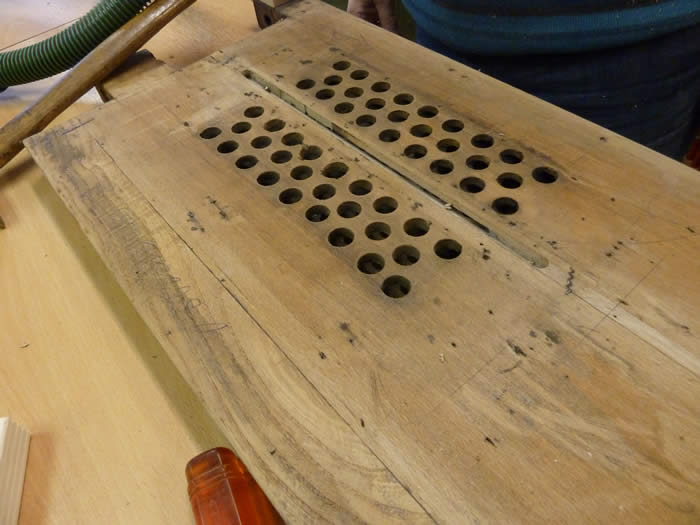 De blaasbalg is reeds volledig hersteld en opnieuw beleerd en er wordt nu aangevangen met een grondige restauratie van het mechaniek.